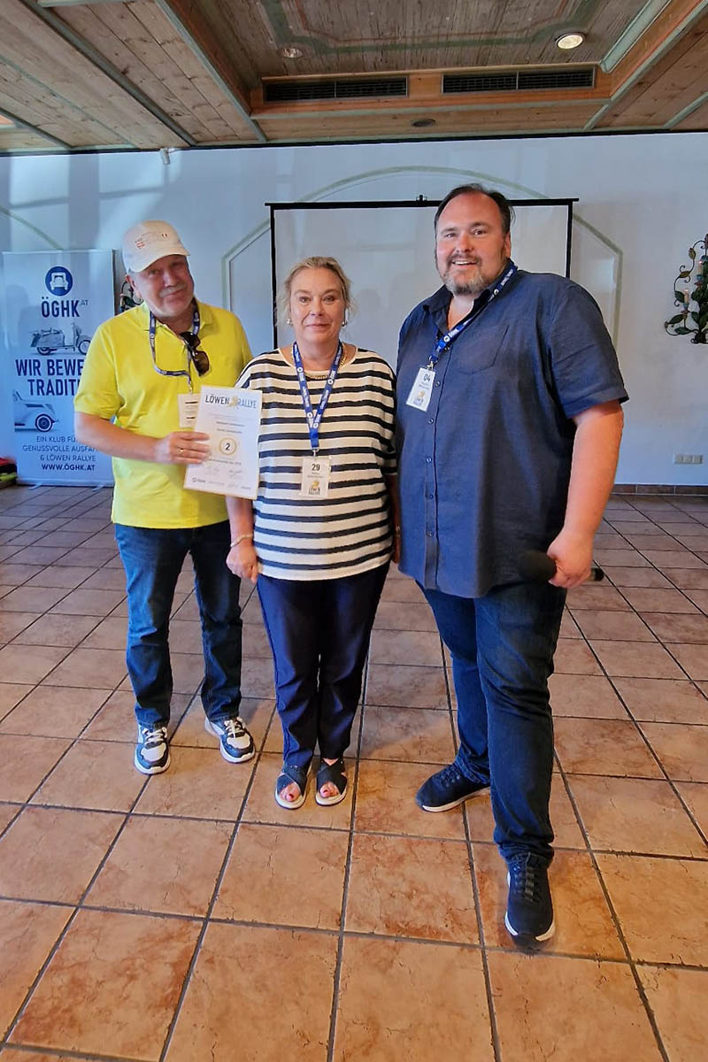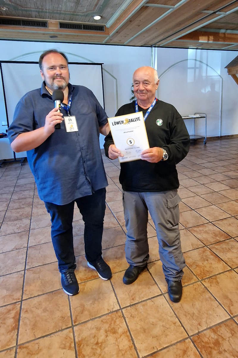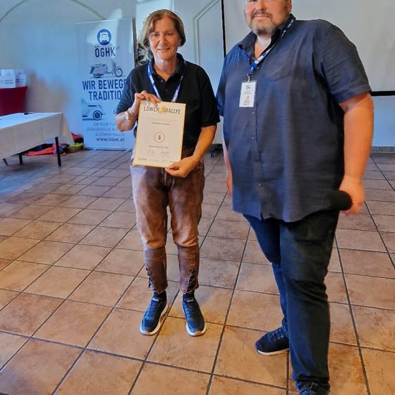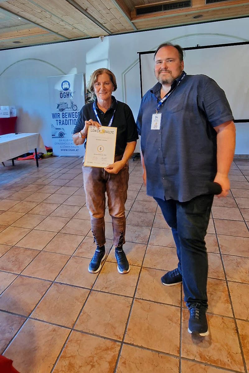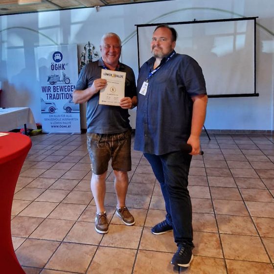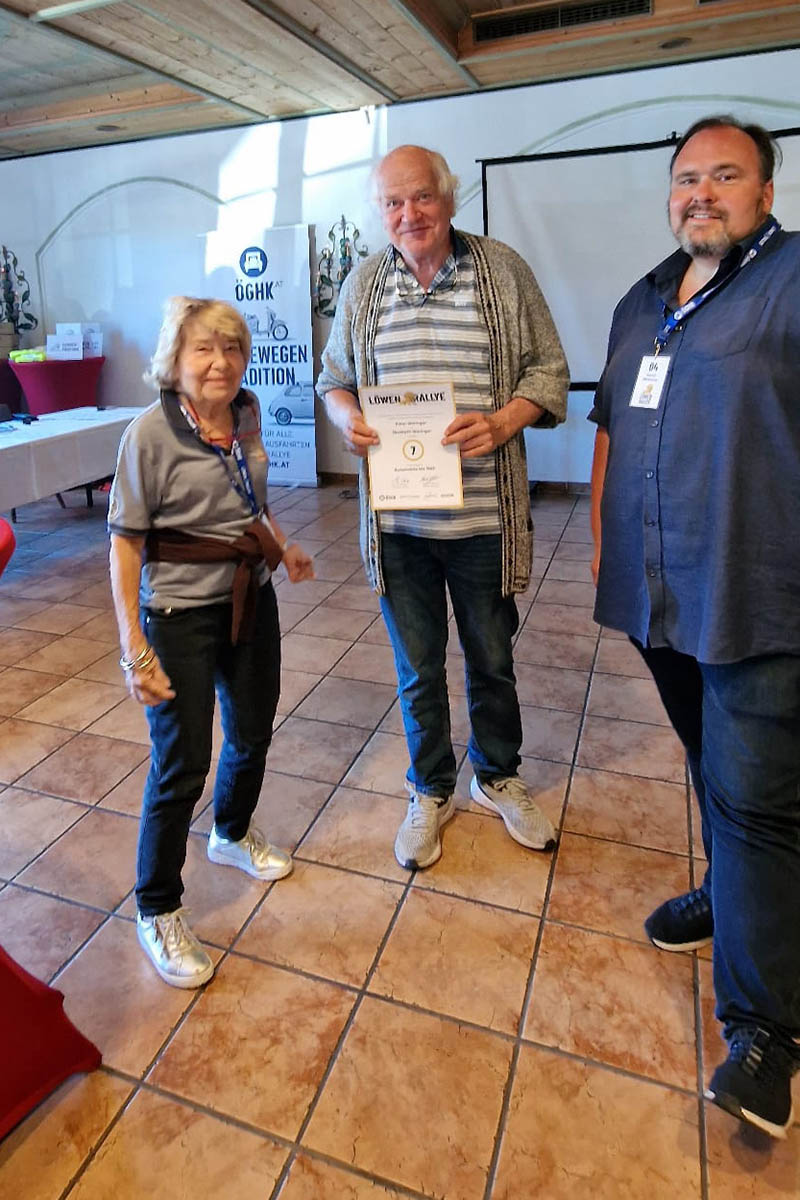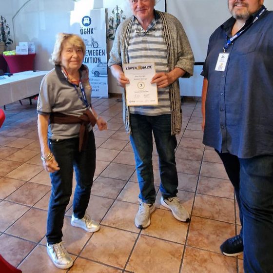 Einen Sonderpreis erhielt Alfred Kobler aus Wals. Mit 81 Jahren fährt Alfred nicht nur regelmäßig die Puch 125/175 seines Vaters sondern hilft stets gut gelaunt bei den Aktivitäten der ÖGHK Salzburg wie der Löwen Rallye. Danke Alfred!